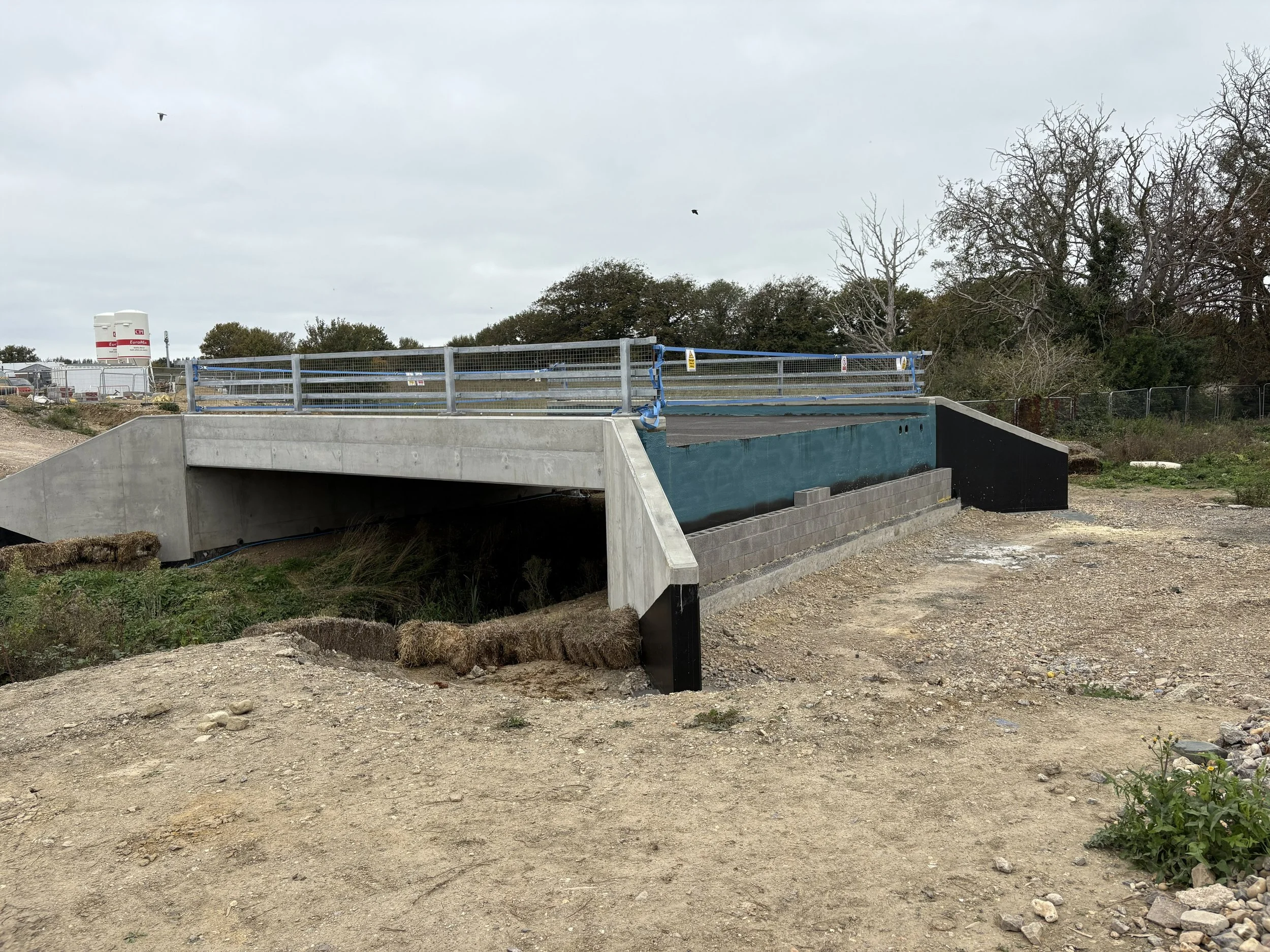 Avon have installed a temporary bridge adjacent to the permanent bridge, to allow construction traffic to enter the site whilst the permanent bridge was being built.