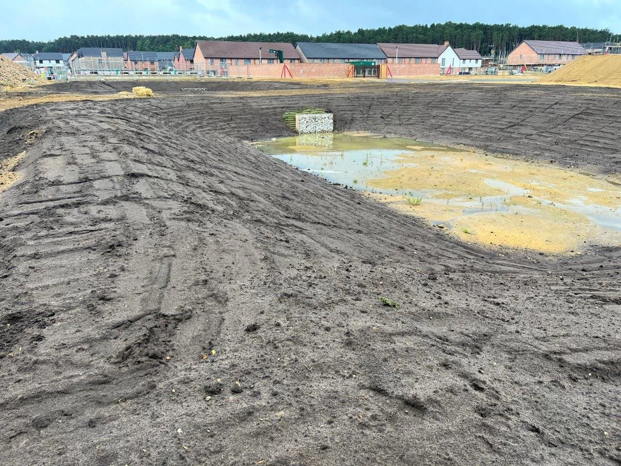 Contracted by Whitehill and Bordon Regeneration Company, Avon Construction were contracted to undertake silt control measures to prevent surface water silt entering the watercourse from a housing development nearby.